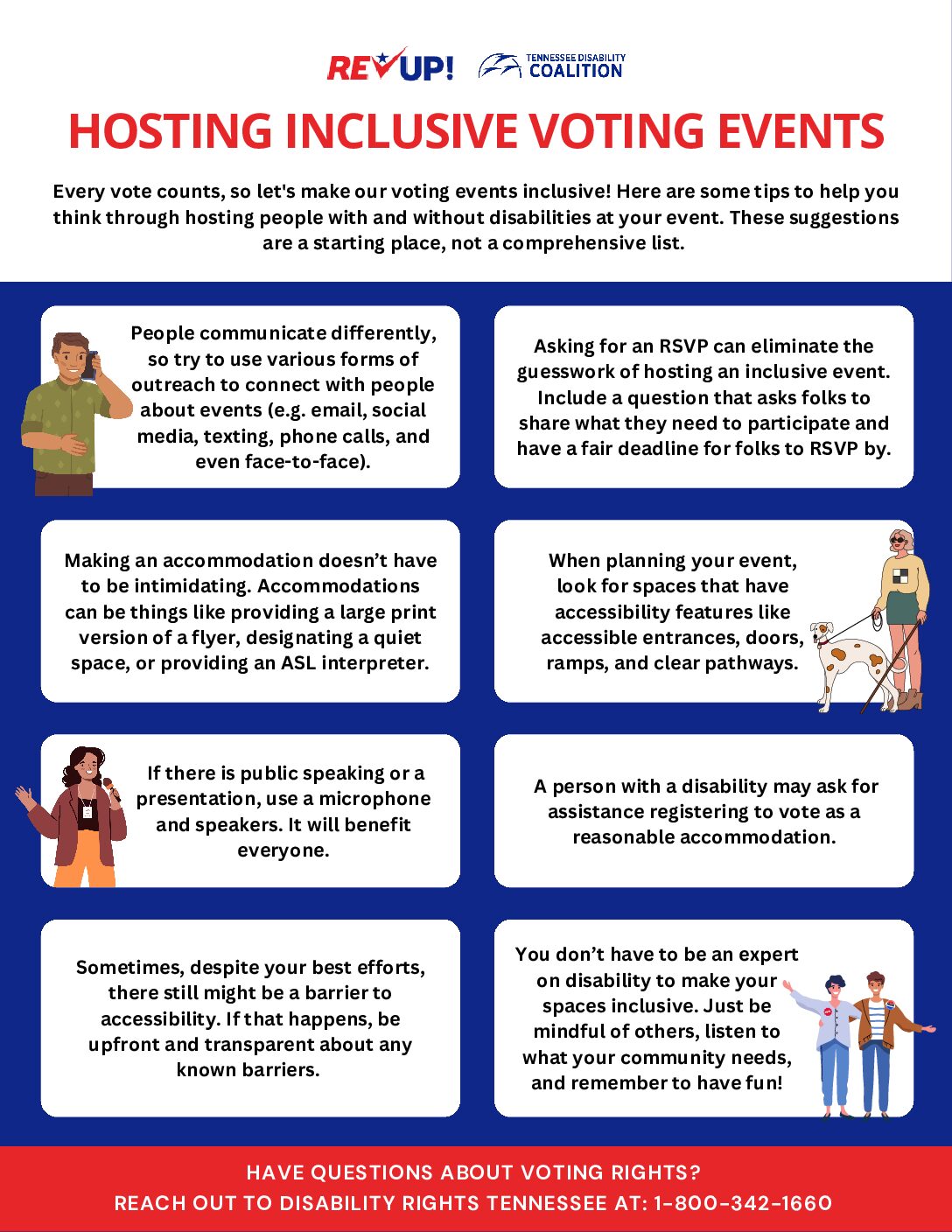 Every vote counts, so let’s make our voting events inclusive! Here are some tips to help you think through hosting people with and without disabilities at your event.