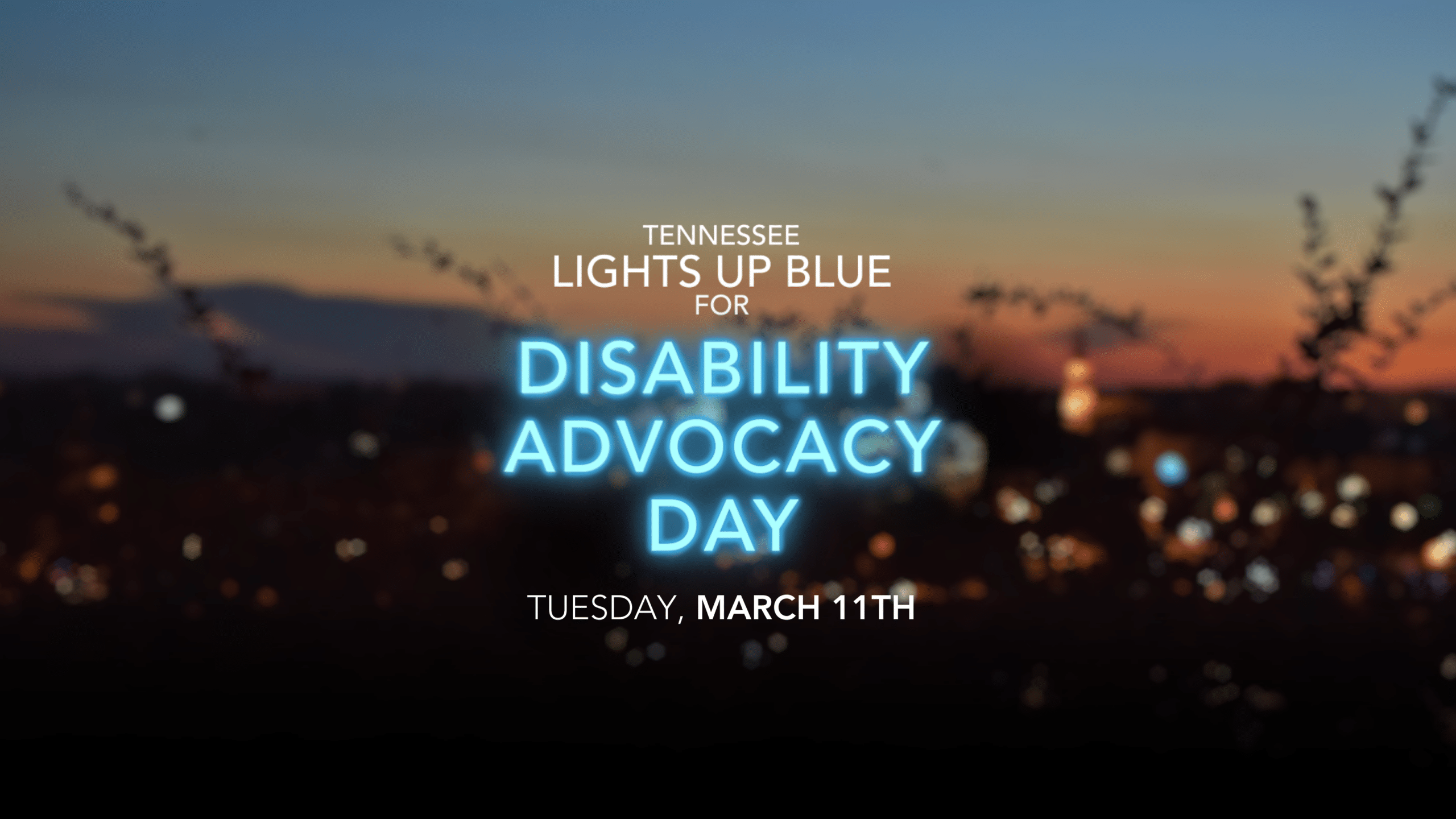 #DisabilityAdvocacyDayTN honors Tennesseans with disabilities who continue to speak up for basic services and speak out against policies that infringe on civil rights and other legal protections afforded under the Americans with Disabilities Act. Tonight, we light up blue in solidarity.