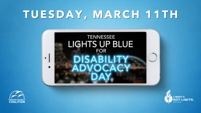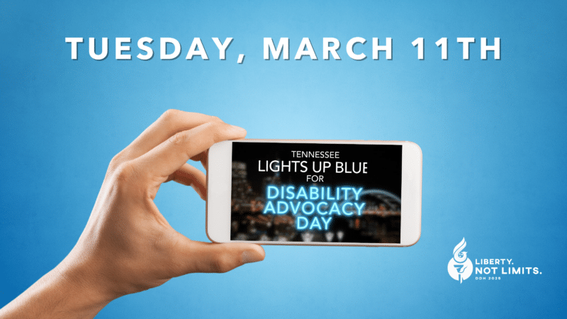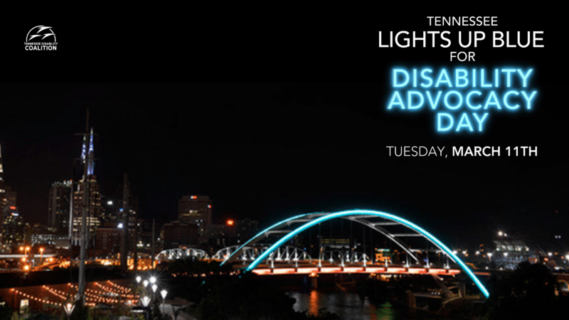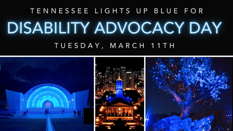 Join us on March 11th as Tennessee Lights Up Blue for Disability Advocacy Day to honor the accomplishments and advocacy of the 1.6 million Tennesseans with disabilities! See below for a Disability Advocacy Day Social Toolkit. Don’t forget to tag us @tndisability so we can share your posts!