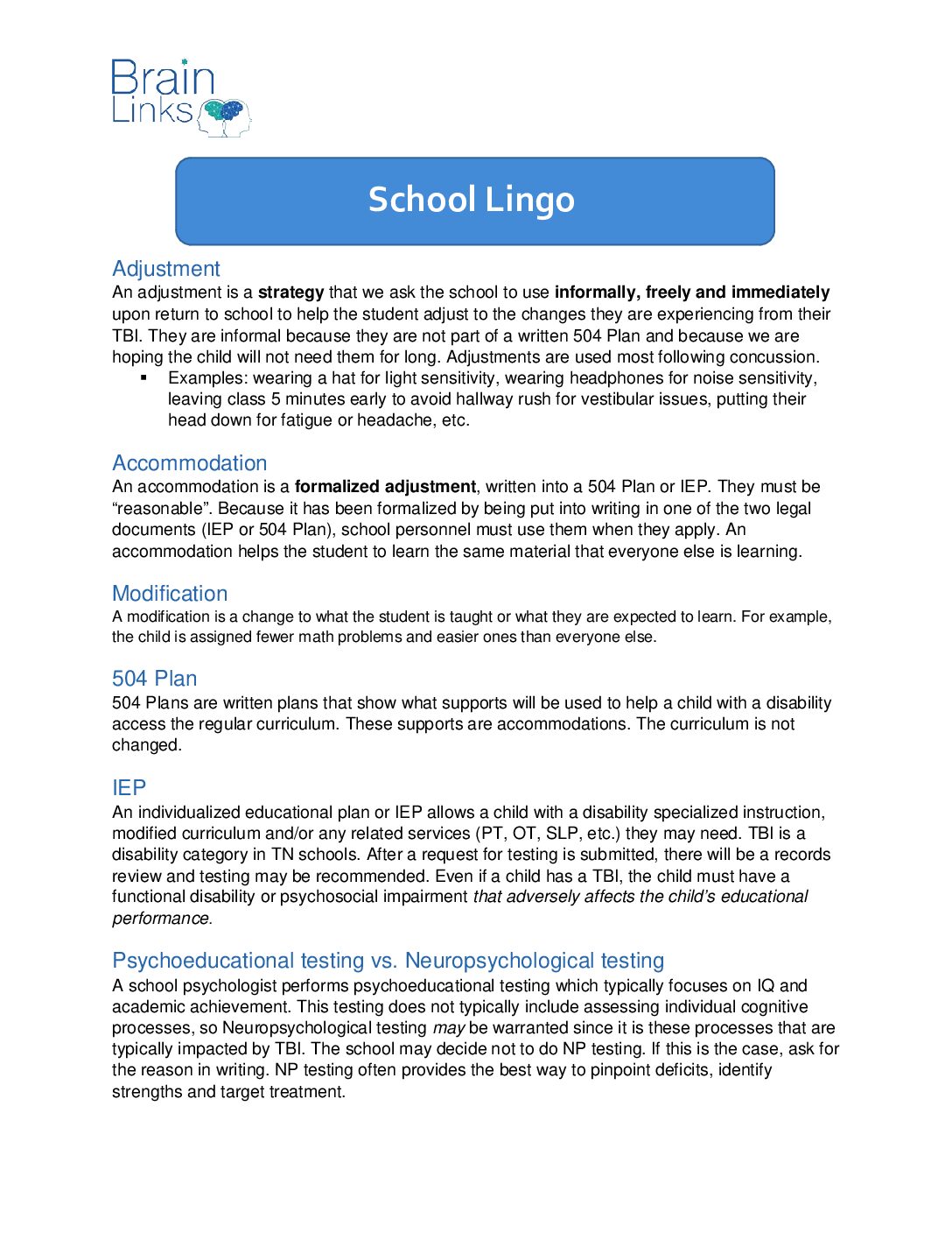 Concussion and Traumatic Brain Injury: Information For Families