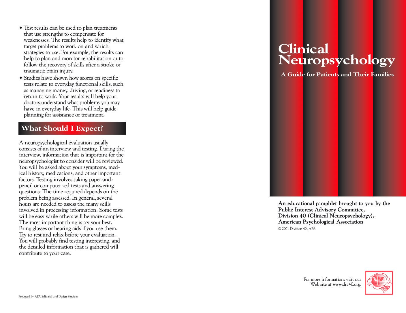 Clinical Neuropsychology: A Guide for Patients and Their Families