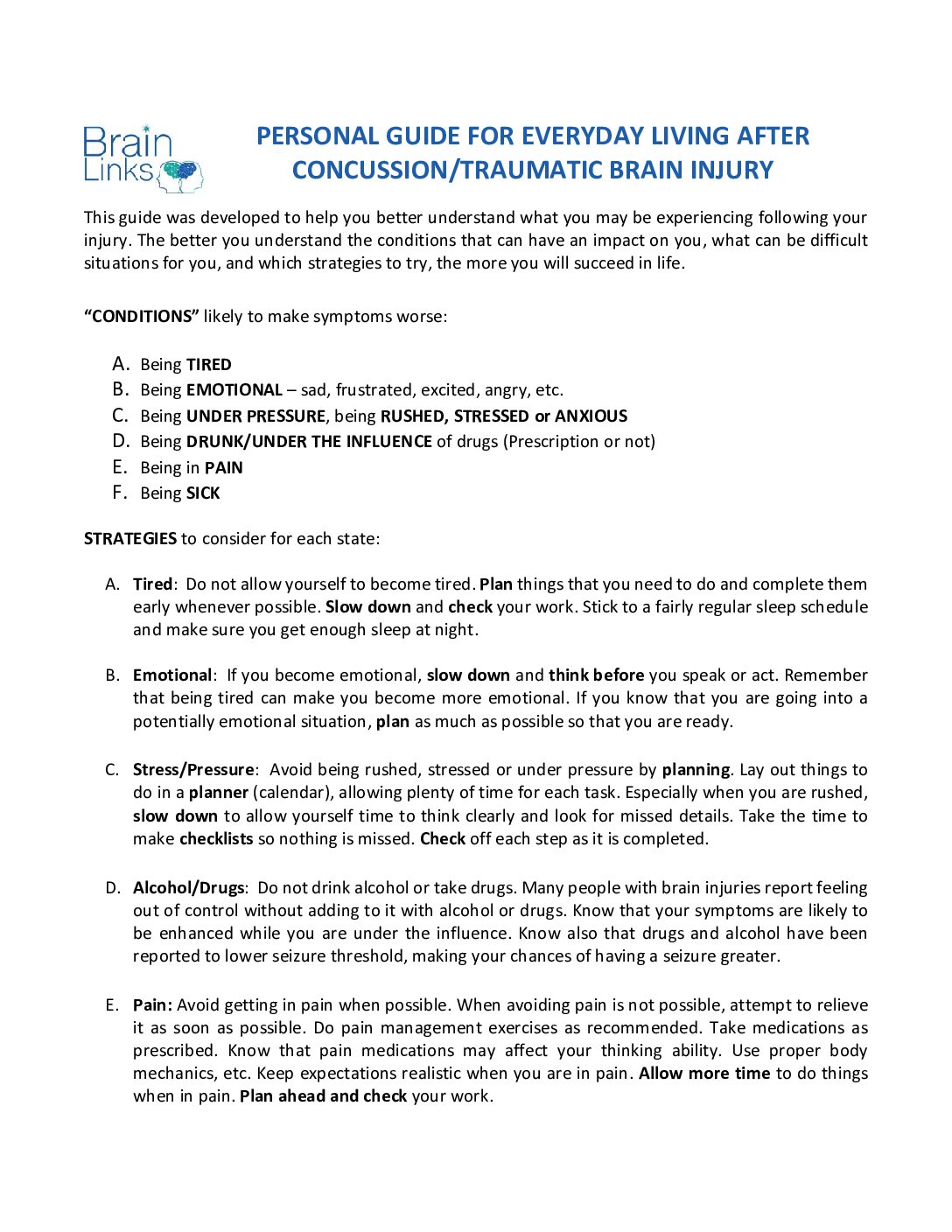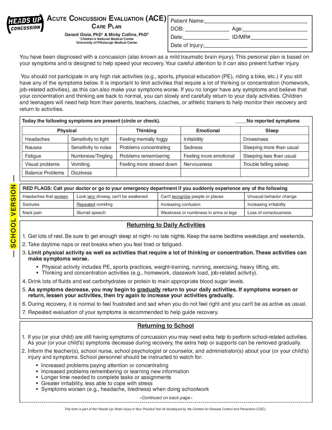 Acute Concussion Evaluation (ACE) Tools: ACE Care Plan – Return to School