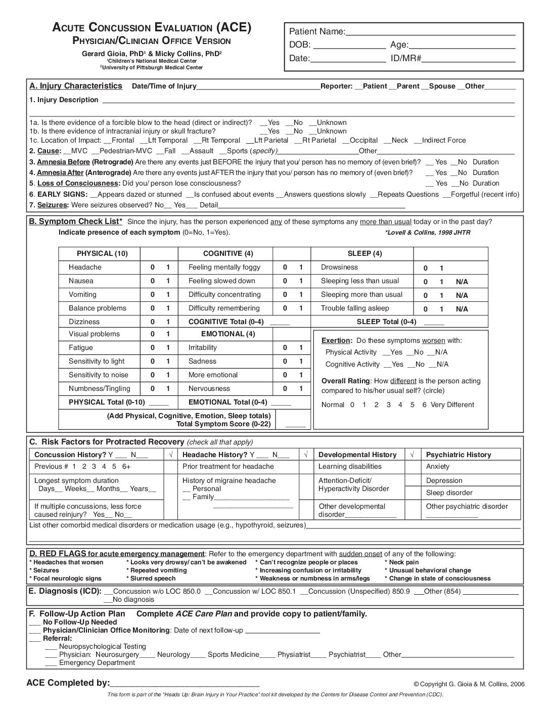 Acute Concussion Evaluation (ACE) Tools: ACE Physician/Clinician’s Office