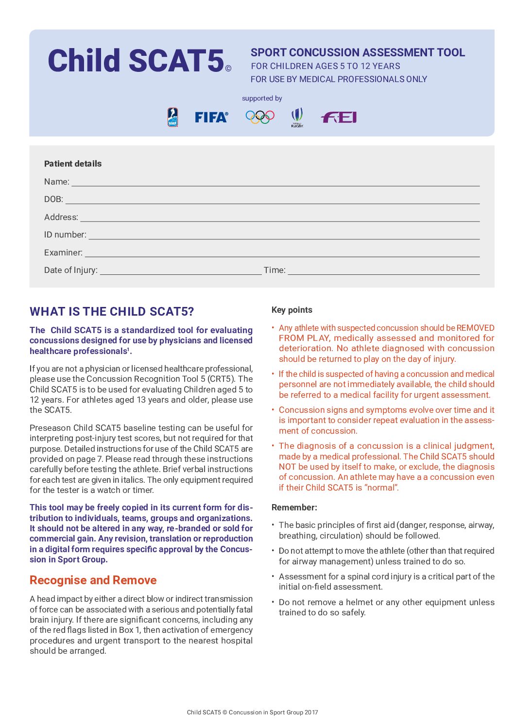 Acute Concussion Evaluation (ACE) Tools: Sport Concussion Assessment Tool – Child SCAT5