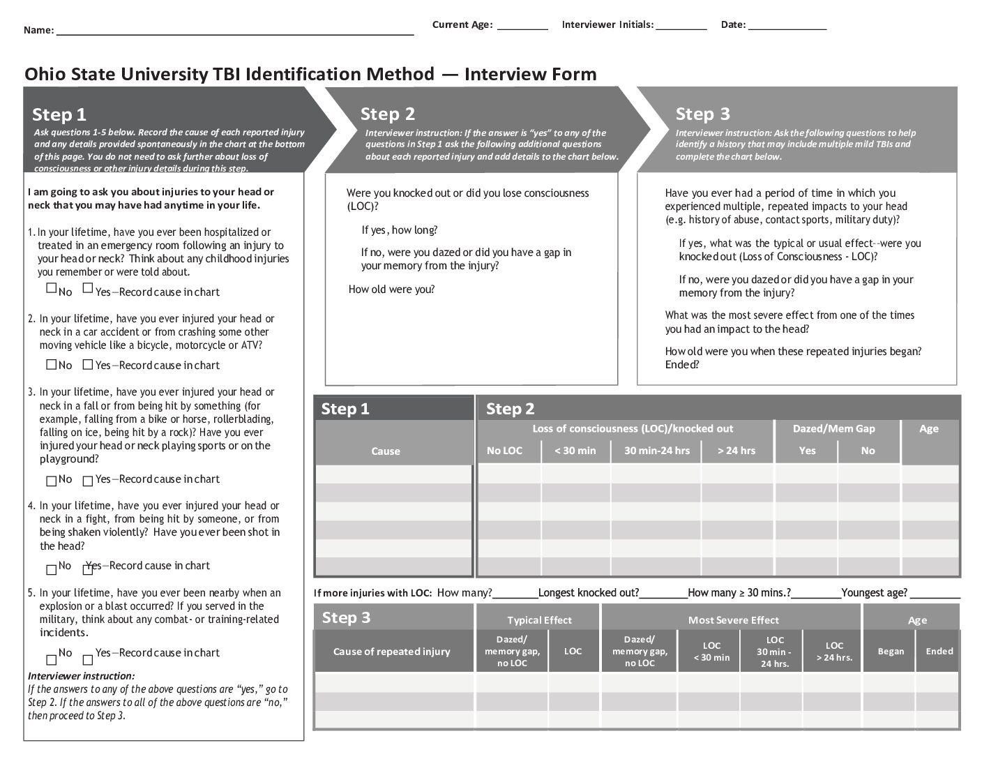 Ohio State University (OSU) TBI Identification Method — MODIFIED
