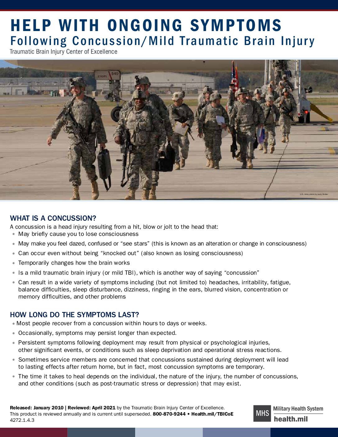 Help With Ongoing Symptoms Following Concussion/Mild Traumatic Brain Injury.