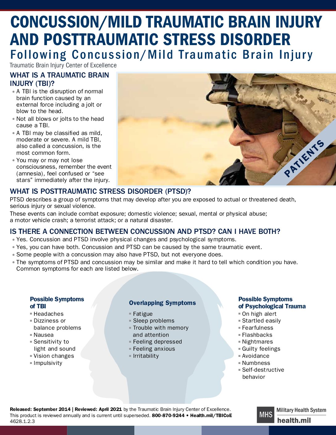 Concussion/Mild Traumatic Brain Injury and Posttraumatic Stress Disorder Following Concussion/Mild Traumatic Brain Injury